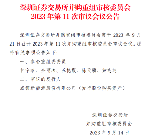 9月14日,深交所消息,威领股份并购重组案顺利通过。