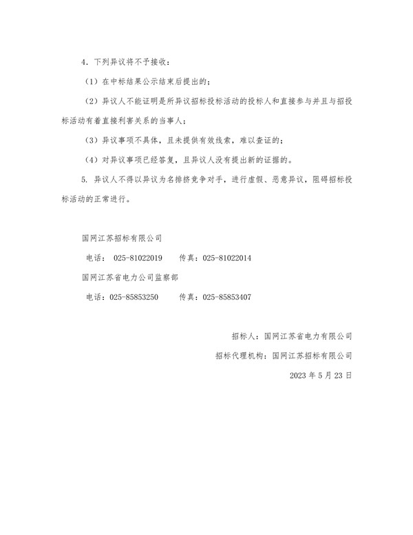 国网江苏省电力有限公司2023年第一次配网物资协议库存公开招标采购项目推荐的中标候选人公示