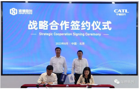 8月17日,海博思创与宁德时代签署战略协议,双方就推进储能、光储充、智能制造等多领域达成深度合作,计划未来三年电池产品采购总量不低于50GWh。这标志着双方的合作迈入新征程,将共同推动行业高质量发展,谱写清洁能源产业新篇章。