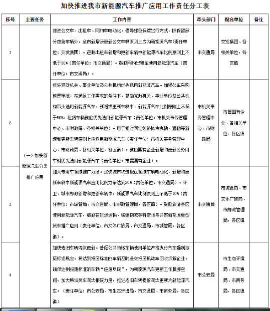 附件:加快推进我市新能源汽车推广应用工作责任分工表